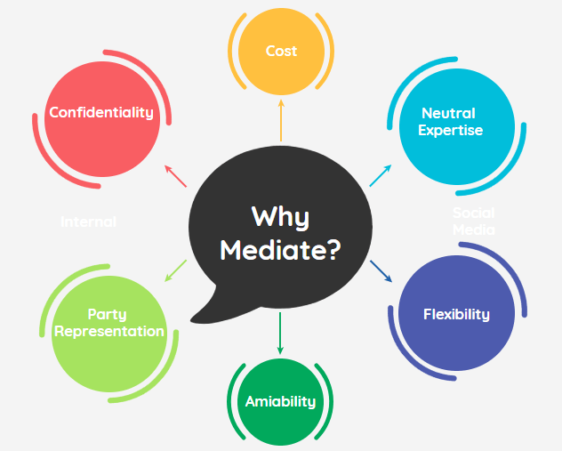 Bij bemiddeling gaan alle partijen in gesprek en onderhandeling met elkaar onder begeleiding van een derde (bemiddelaar), die zelf geen beslissing neemt, maar de partijen zelf laten beslissen.